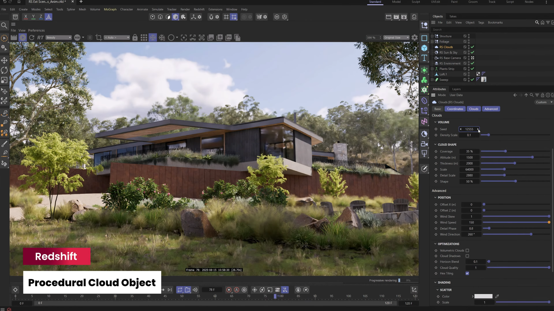 RS Cloudsオブジェクトを追加することで、プロシージャルでありながらリアルな雲が作成できるようになりました。