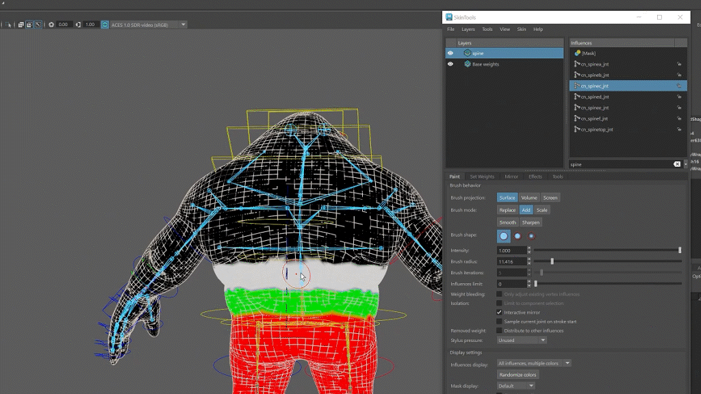 ngSkinTools をベースにした最新の完全に統合されたスキニング ツール セットが組み込まれました。これにより複雑なデフォメーションの調整、反復、解決がより高いコントロール性と信頼性を持って容易に行えるようになります。