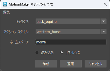 MotionMaker に新しい標準の馬キャラクタ adsk_equine が追加され、馬のキャラクタのモーション生成が可能になりました。