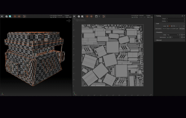 マルチタイルやUDIMを使用するワークフローにおいて、グループ化されたアイランドをタイルごとに自動パッキングできるようになりました。