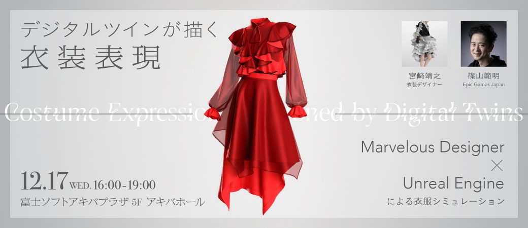 トップ » セミナー » デジタルツインが描く衣装表現 Marvelous Designer × Unreal Engineによる衣服シミュレーション