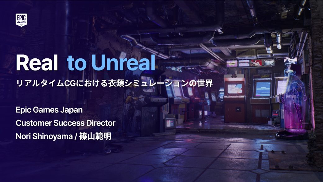 18:00〜19:00 Real to Unreal ~リアルタイムCGにおける衣類シミュレーションの世界~|篠山 範明 氏(Epic Games Japan)