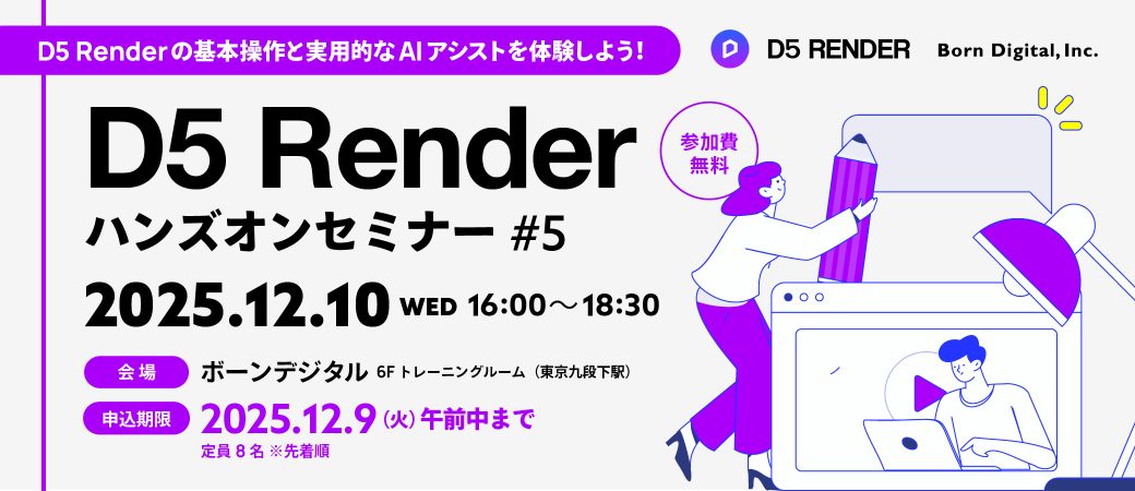 【手ぶら参加可能】D5 Render を実際に操作しながら学べる実践型セミナー開催!