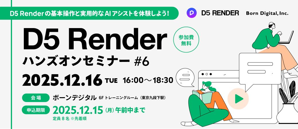 【手ぶら参加可能】D5 Render を実際に操作しながら学べる実践型セミナー開催!