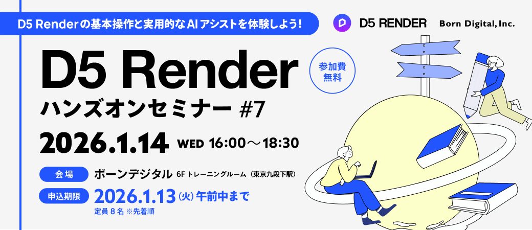 【手ぶら参加可能】D5 Render を実際に操作しながら学べる実践型セミナー開催!